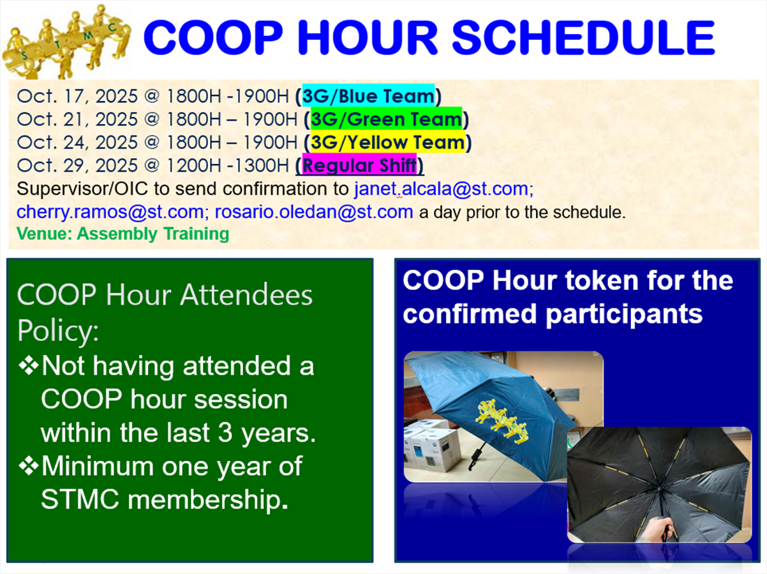 After six meaningful years of implementing the STMC program under our membership Rewards Point System (RPS), we wish to inform you that the program will officially be terminated effective October 01, 2025.